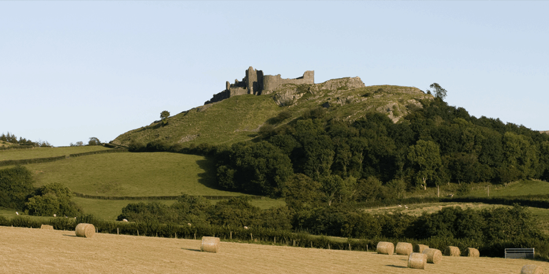 Like Carreg Cennen, Dinefwr Castle watches over the Tywi Valley from a rocky hilltop. Crumbling stone walls tower over the grass-covered site and look like a scene from a Welsh storybook.