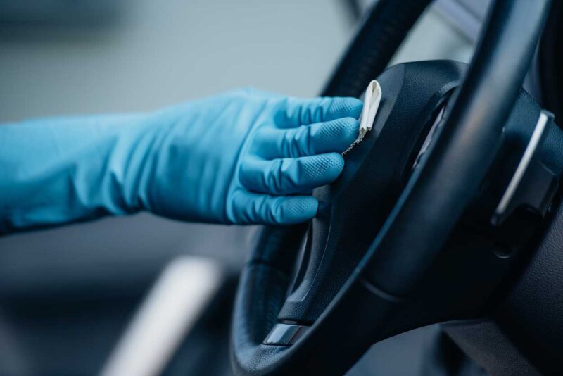 Before tackling the interior of the car, make sure you give all handles (including the one found on the boot) a good wipe down to get rid of any bacteria. The same goes for the keys to the car themselves. As some of the most commonly touched items associated with your vehicle, they’re high risk as disease carriers. Then you can move inside, where you should concentrate on the following areas: